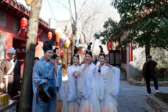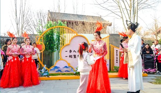 今年全新亮相的潘安坊街区,更是成为打卡新地标。《凤舞鸣》《刘伶醉》《嵇康打铁》等沉浸式演艺轮番上演,潘安巡游、潘安赠礼等互动环节,让游客与“古代名士”零距离邂逅,一步入坊穿魏晋,一街繁华遇潘安,古风氛围感直接拉满。高密度的NPC互动打破舞台边界,既有孩童的欢声笑语,也有年轻人的打卡热潮,让传统文化焕发新生。