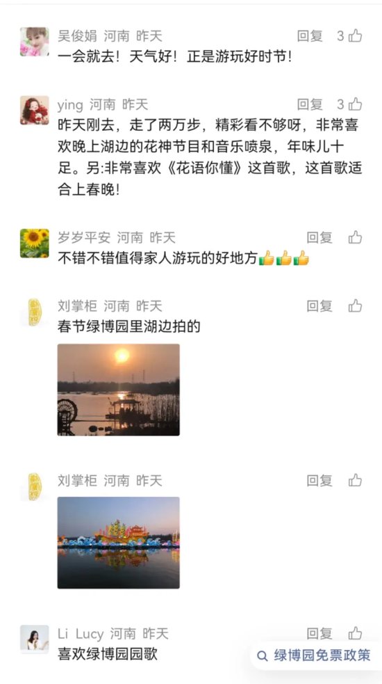 许多游客在社交平台留言,一句句真诚的话语,汇聚成绿博园最珍贵的新春记忆,也印证了“用心做好服务,方能收获认可”的初心。