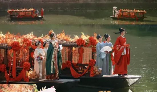 水上迎亲:新郎将乘坐中式画舫,带领迎亲队伍,去迎接他最美的新娘。