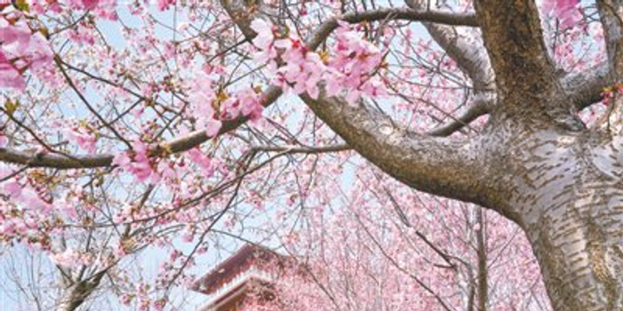 ①郑州荥阳古柏渡丰乐樱花园内,樱花渐次开放,为黄河岸边奏响浪漫春日序曲。