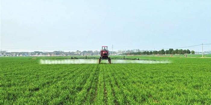 现代化机械设备为返青麦苗做“药浴”。刘俊涛 摄