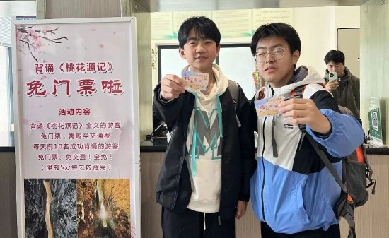 凭才华免票福利持续上线,清明假期,5分钟内现场完整背诵《桃花源记》,即可免费入园。(每日前十名,免门票+免景区交通,0元畅玩关山;10名之后,免门票,仅需支付40元/交通费+5元/人保险)