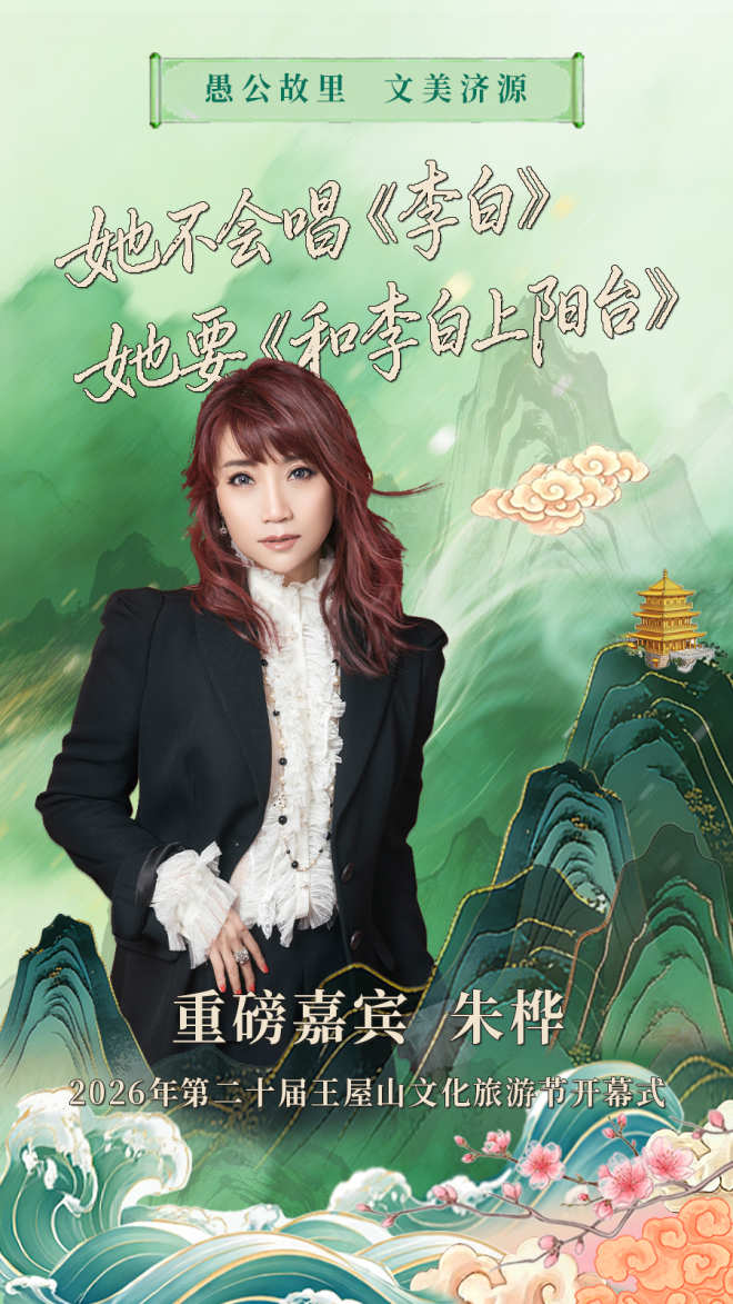 朱桦,华语乐坛实力派女歌手,用一首首经典之作,诠释了音律之美、声韵之美。此次将为“文美济源”增添一抹灵动的艺术亮色,用音乐的语言讲述阳台宫的故事,让文艺之美在济源山水间久久回荡。