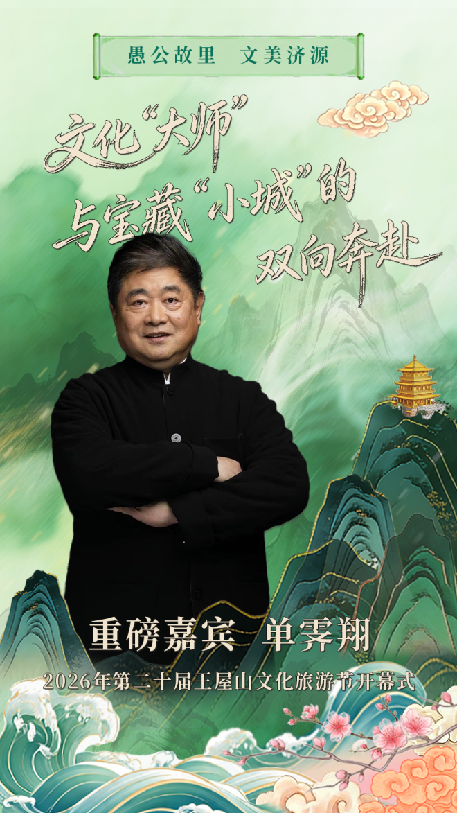 关注原标题:《单霁翔、王巍、葛磊、朱桦、侯京健联袂助阵——2026年第20届王屋山文化旅游节即将在河南济源启幕》