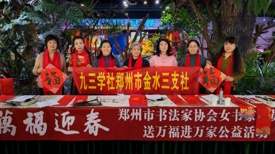 关注新春佳节来临之际,为弘扬中华优秀传统文化,营造欢乐祥和的节日氛围,2月7日,九三学社郑州市金水三支社联合郑州市书法家协会女书法家委员会,在乐尚天地生活广场开展“送万福进万家”公益送春联活动。郑州市书协女书法家委员会副主任魏敏,支社主委于萍及部分骨干社员参加。