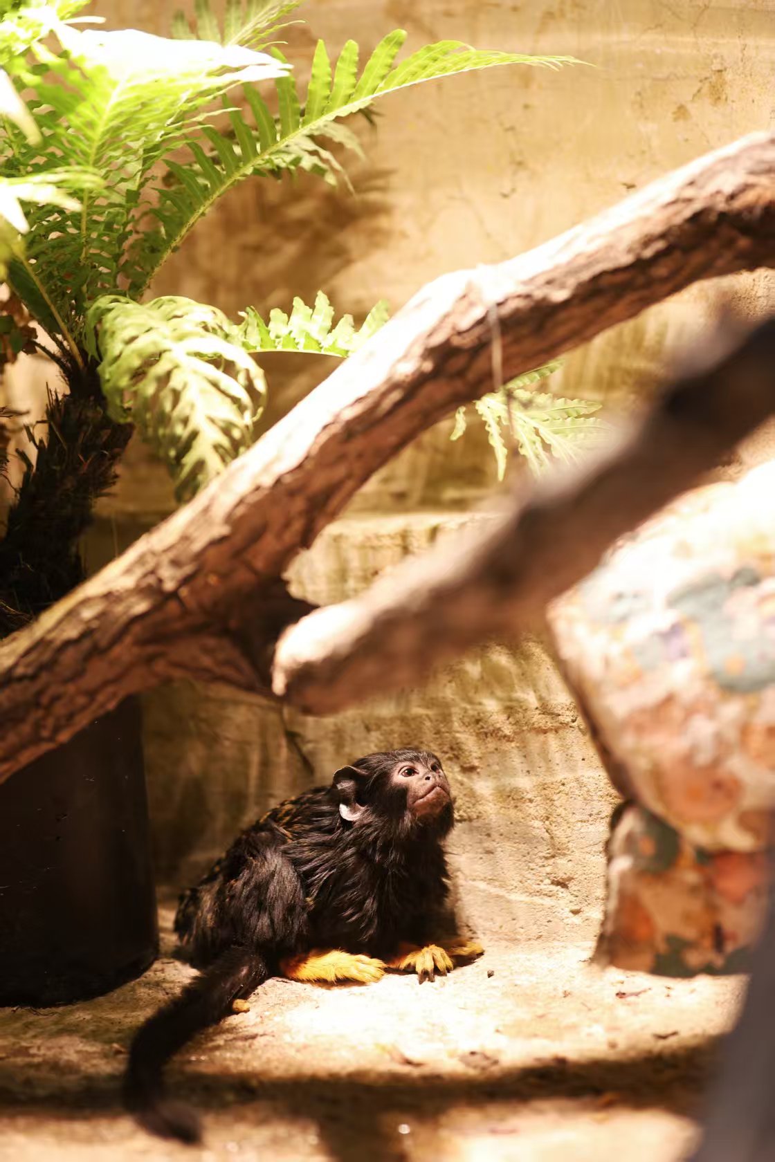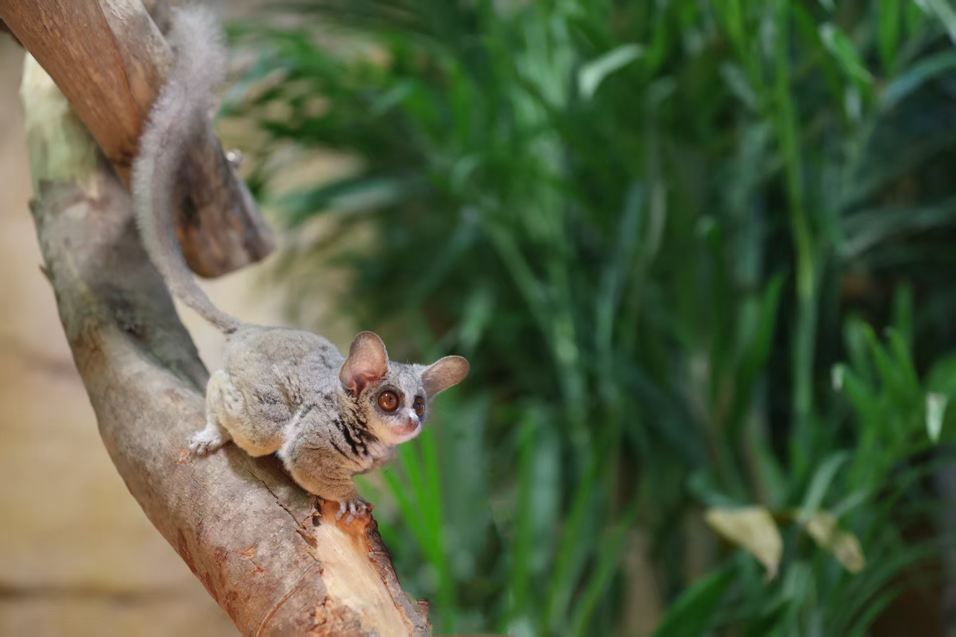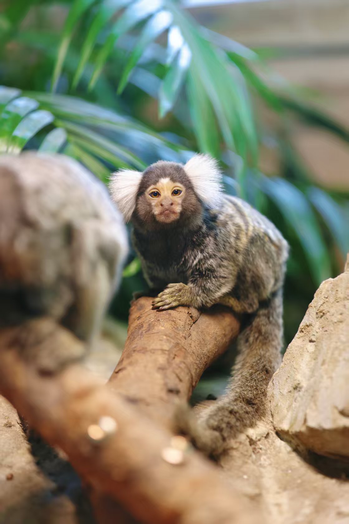 其中,普通狨是体型最小的灵长类动物之一,成年个体体长仅20厘米左右,其最具标志性的颜值亮点是耳朵旁边长有一簇醒目的白色长发。婴猴身形更加纤细娇小,属夜行性灵长类动物,因经常在夜间发出婴儿啼哭般的叫声而得名“婴猴”。赤掌柽柳猴通体以顺滑的黑褐色毛发为主,而其四肢手掌、脚掌点缀着鲜亮的金红棕毛发,宛如自带精致的红棕色手套与长筒袜,时尚感十足,也正是“赤掌”之名的由来。
