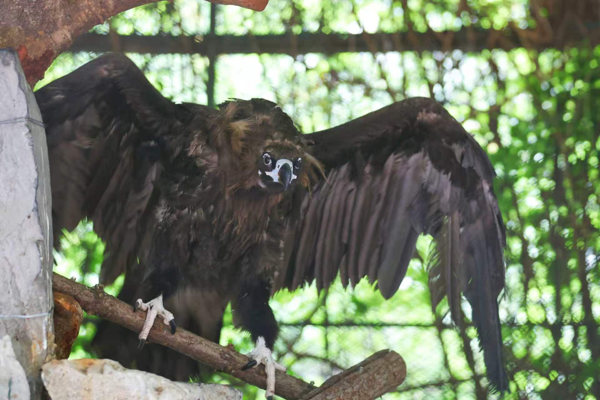 国家一级保护动物秃鹫亮相猴山对面
