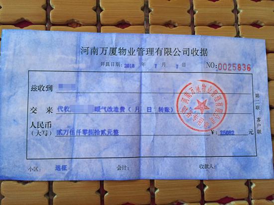 11月27日下午,记者来到了位于郑州市城东路城北路交叉的远征都市港湾小区,通过对多户居民询问,证实该小区的暖气还未供应。“我们家是去年缴的暖气改造费,一共两万多也不便宜呢,装好之后也供过一段时间,当时以为后续肯定没啥问题了,我们也就没放心上,谁知今年就没供上,年纪大了真的不顶冻啊。”家住6号楼的王奶奶向记者拿出了小区物业公司开具的暖气改造费收据,并称供暖设施于去年冬天安装,之后短暂供应过一个月时间。