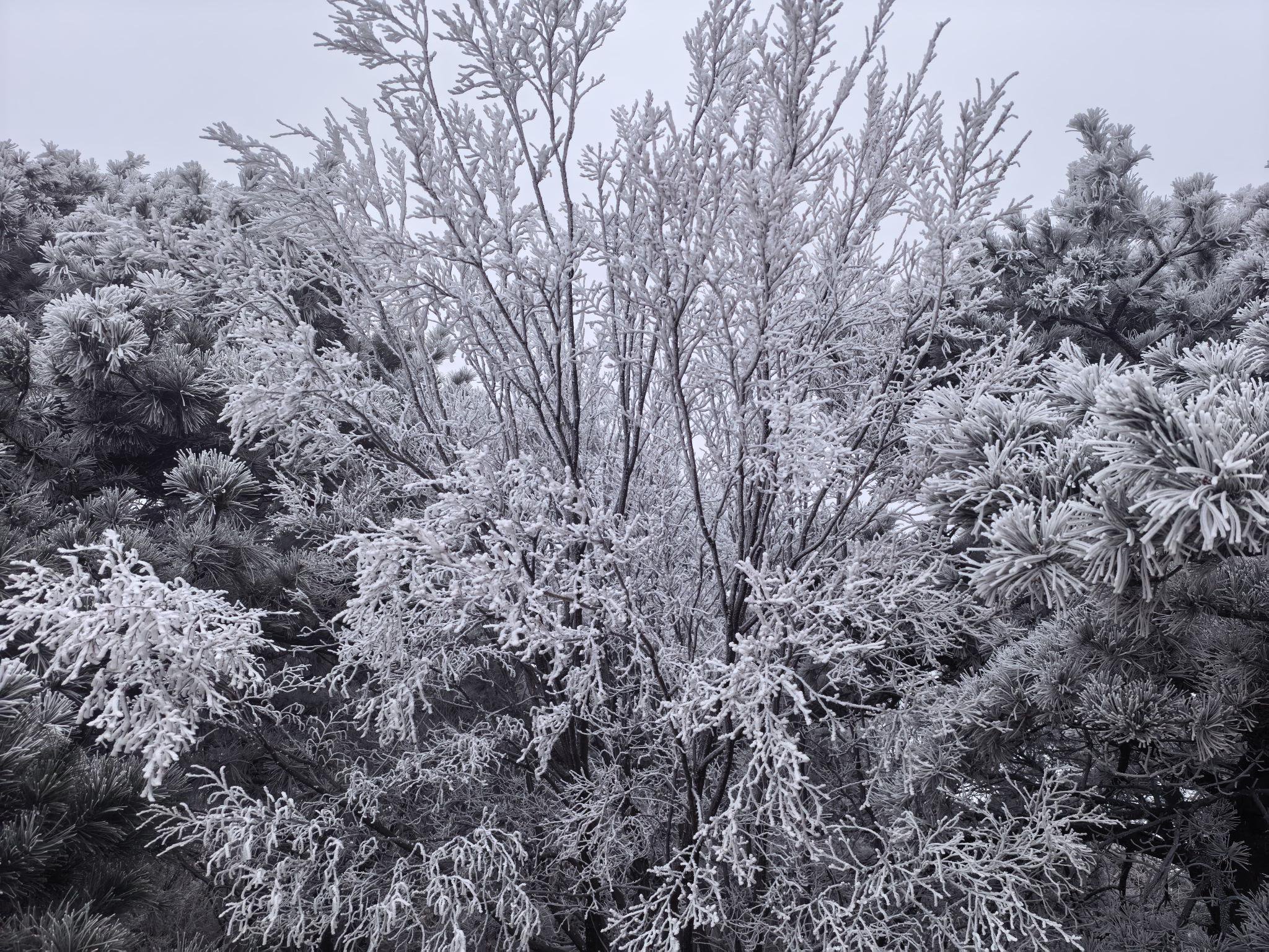 雾凇俗称“树挂”,是雾气在低于0℃的物体上直接凝华形成的白色冰晶沉积物。它不仅美化环境,也是空气洁净、气候湿润的“天然指示器”。