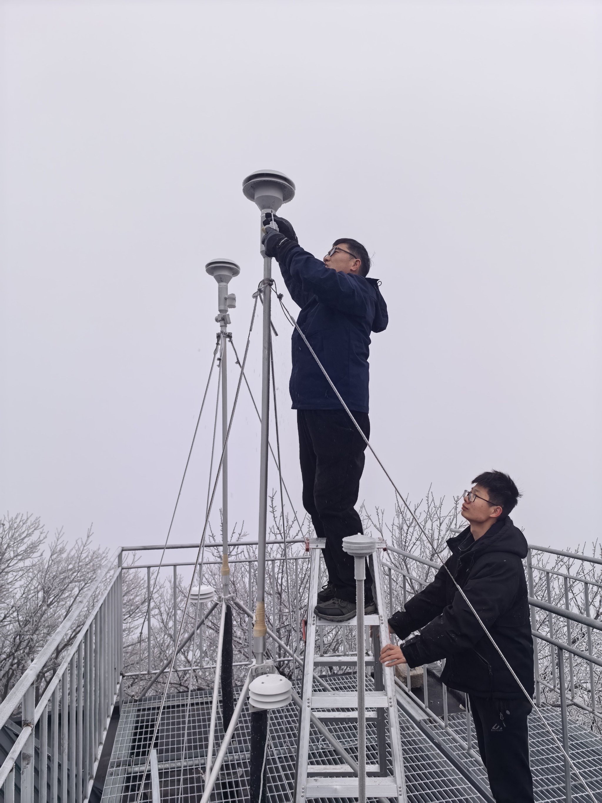 在位于登封市太室山跑马岭的嵩山气象站,站在海拔1178.4米的高度,工作人员仿佛置身于冬日的童话世界,树上挂满了美丽的雾凇,仿佛戴上了白色的“假睫毛”。