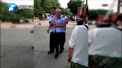 被另一名身穿制服(疑似同事)的男子拉开抱紧