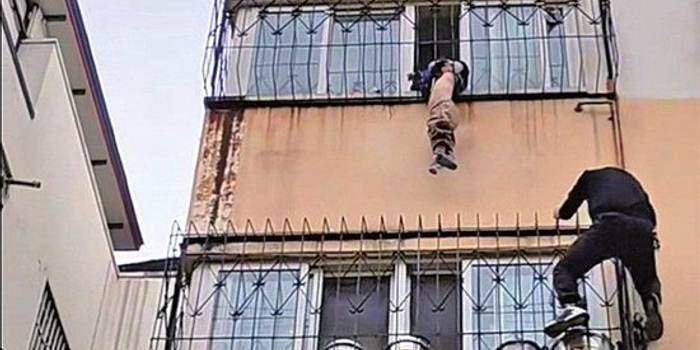 4楼窗外的“徒手逆行”