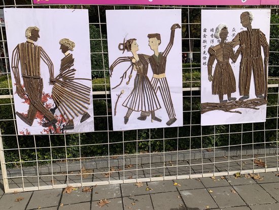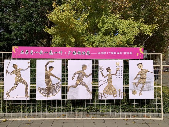 “这些作品既是对传统文化的致敬,也是对广场生活的记录。”展览负责人介绍说,每一根枝条的摆放都经过反复琢磨,既要贴合甲骨文的字形,又要还原生活中的灵动瞬间,这是职工们匠心的体现。园林职工每天见证广场的烟火气息,便萌生了将甲骨文与市井活力结合的想法,既传递“变废为宝”的环保理念,也让市民在熟悉的场景中感受文化魅力。