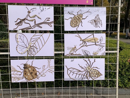 十二生肖甲骨文保留古文字古朴神韵,牛的沉稳、兔的乖巧通过枝条弧度尽显;市井活力图景更是妙趣横生,跑步、打球、滑板、跳舞、散步、孩童挥拍打羽毛球的场景,以长短错落的枝条精准还原,仿佛将广场日常的热闹瞬间定格;蝴蝶、瓢虫等昆虫造型则巧用细小枝丫与年轮木片,栩栩如生惹人喜爱。