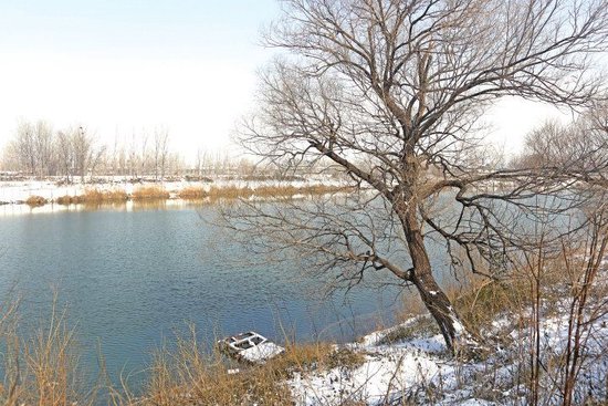 村子外面,是铺满了瑞雪的农田,绿意葱葱的麦苗从积雪中探出脑袋,迎风摇曳。古老的沙河岸边,高大的杨树和柳树守望着那片热土,透着岁月的沧桑和深沉。河对岸的村庄依稀可见,如梦里熟悉的“老家河南”。