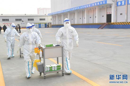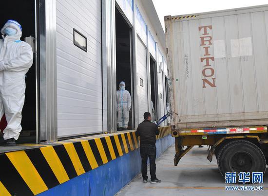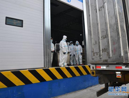 郑州市市场监管局相关负责人表示:“建设使用集中监管仓,是落实进口冷链食品‘四个集中’的有力举措,更是有效阻断疫情传播风险的重要关口。集中监管仓的投用,将为郑州市‘外防输入’加筑一道坚固防线。” 新华网发(丁友明 摄)