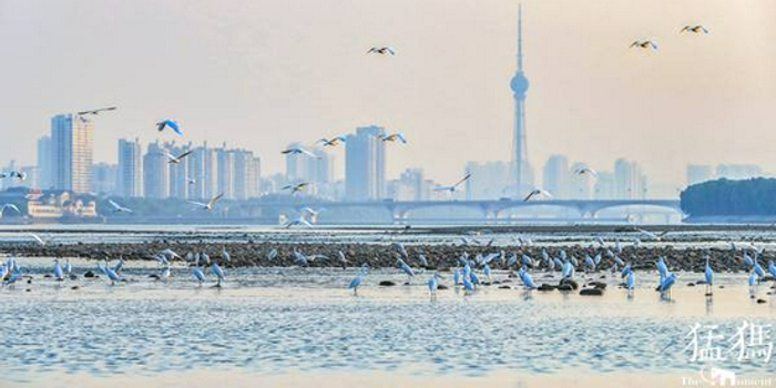 白露时节,穿越洛阳城区的洛河鱼虾丰盛,成群的白鹭翩翩起舞,或在浅滩觅食,或结伴盘旋空中,或栖息在林间引颈相唤,勾勒出一幅美丽和谐的生态图景。这些白鹭通体为白色,体型纤长,姿态轻盈,从远望去宛如朵朵盛开的梨花,极其壮观。