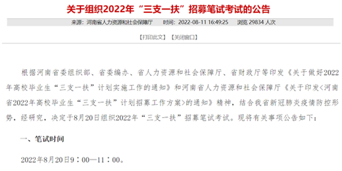 河南“三支一扶”考生看过来,笔试8月20日举行!