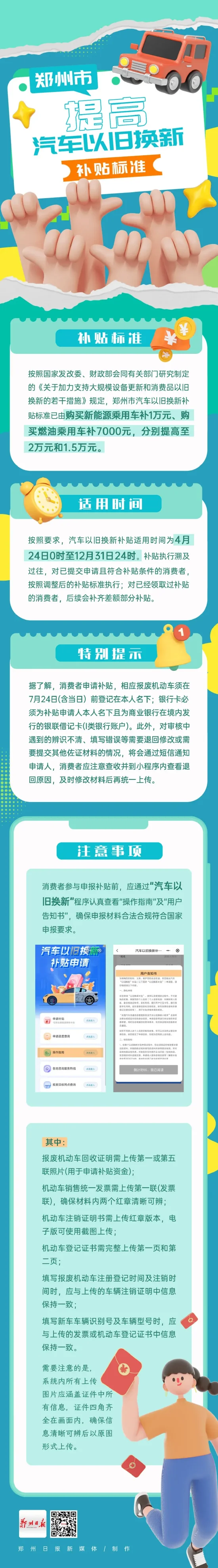 郑州提高汽车以旧换新补贴标准,细则来了→
