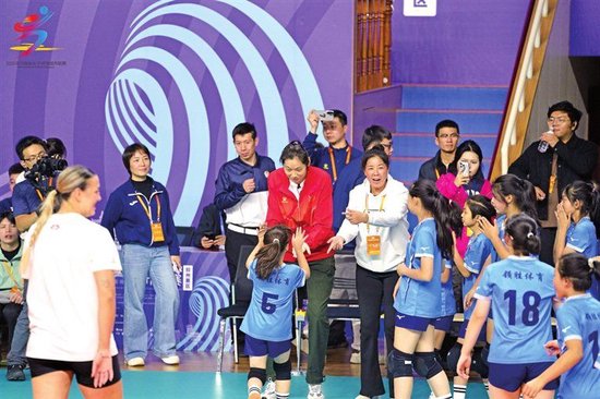 比赛开始后,朱婷亲自开球,双方小球员你来我往打得非常激烈。当优胜路小学队落后几分时,“朱指导”及时叫了暂停,小队员们围在她身边,认真聆听,上场后很快取得效果,迅速将比分扳平。“我在给她们讲东西的时候,她们在认真听,我从她们的眼睛里能看出来她们很专注,这就是教练员和队员之间的默契。然后她们在场上能够将我说的东西做出来,我想这是作为运动员必备的素质,这对她们来说也是收获。”朱婷说。