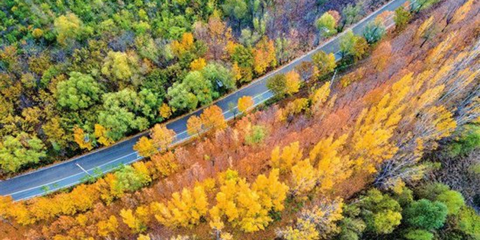 林中小路与网红疏影路是律动的线条。小路若隐若现,像一条丝带,在林木的缝隙中露出深褐色的泥土本色向远处延伸。今年已成为“网红打卡地”的疏影路,在航拍视角下展现出最迷人的姿态。