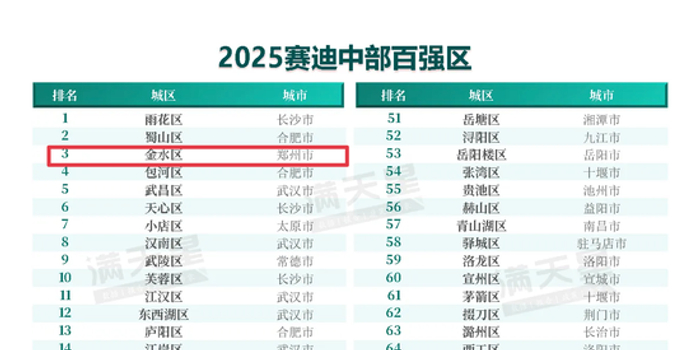 蝉联中部百强区第三!郑州金水区稳坐河南城区榜首