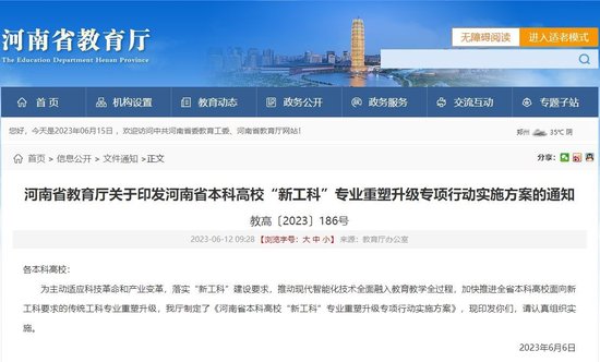 早在2023年,河南省教育厅便印发《河南省本科高校“新工科”专业重塑升级专项行动实施方案》(以下简称《方案》),明确加速推进从传统工科到“新工科”的转型跨越。
