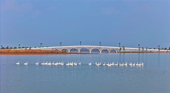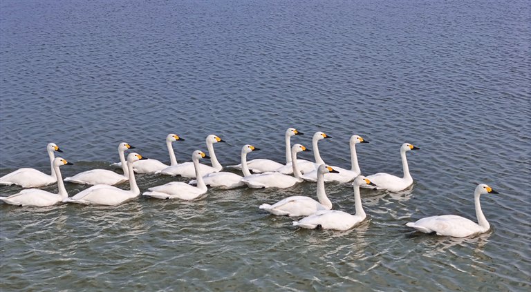 周口万亩龙湖迎来迁徙白天鹅 32个人工投喂点补充体力不掉队