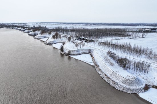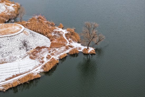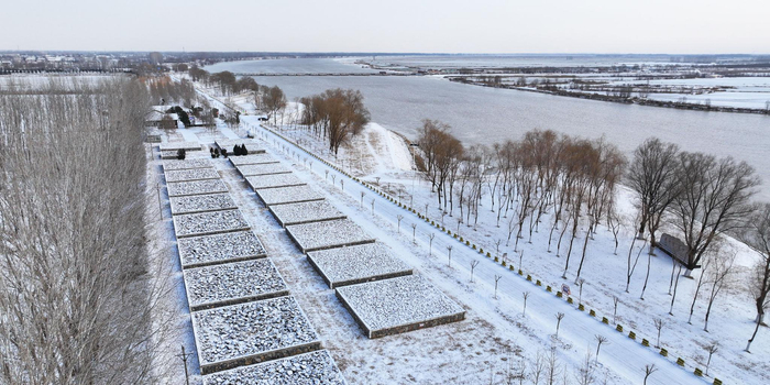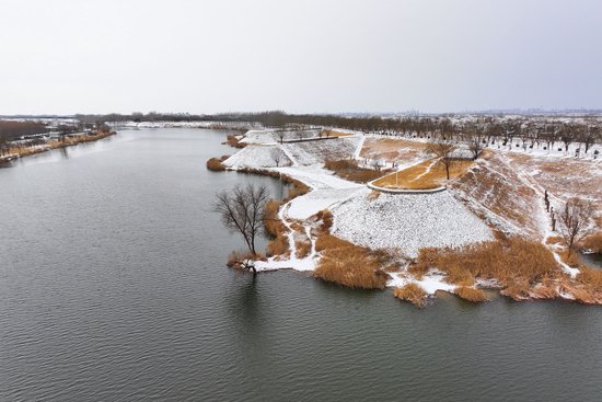 雪落在长垣境内的黄河上,雪落在黄河岸边的长垣市。