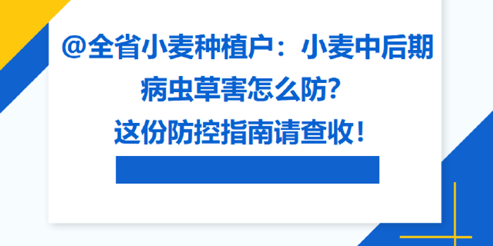 @全省小麦种植户:小麦中后期病虫草害怎么防? 这份防控指南请查收!