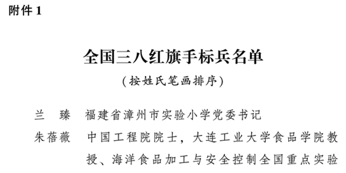 全国三八红旗手标兵名单