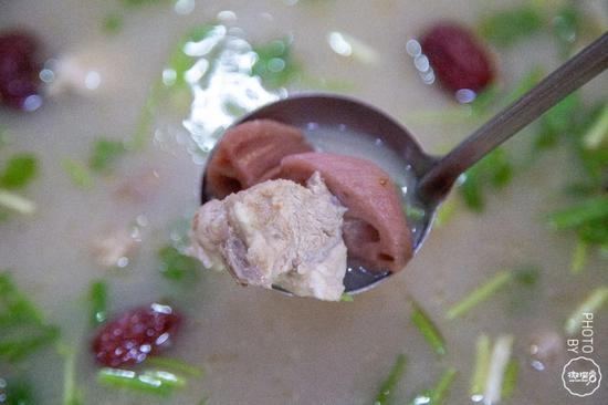 能看到大块的排骨肉和粉嫩的莲藕,