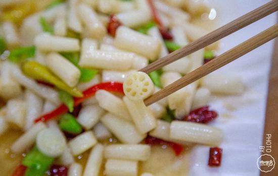 用泡椒泡制出的藕带,