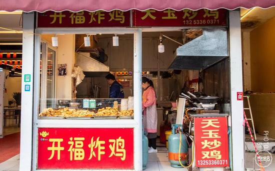 【开福炸鸡】的店面很小,不仔细找还真找不到。不过,在这儿经过的人,都会停下问一句"都有啥?”,这可太多了,鸡排、鸡翅根、鸡腿、鸡叉骨……应有尽有,把一只鸡都给用上了,简直是吃货的小天堂。