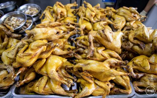 进店就能看到后面做炸鸡的操作间,桌子上摆满了一个个卤好的整只鸡,金黄金黄的看着十分诱人。每个美食后面都藏着一个属于它的故事,战杰炸鸡就是其中之一,西郊大街小巷的美食不少,他家麻辣鲜香的炸鸡却让不少郑州人念念不忘。从最初推着三轮车出摊卖,到现在有了自己的店面,这家网红炸鸡已经有28个年头了。
